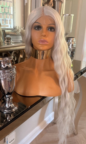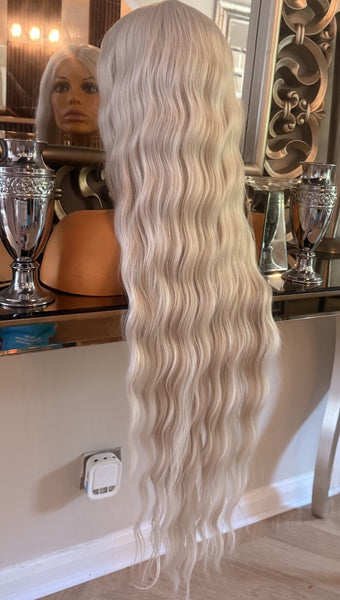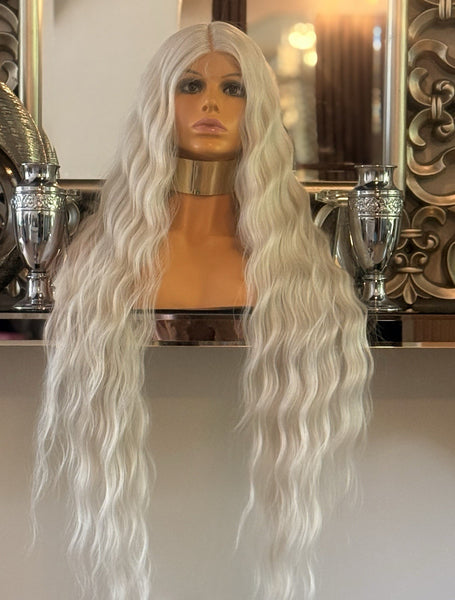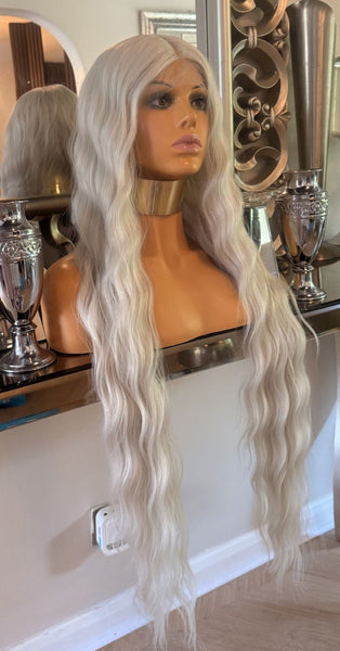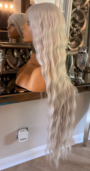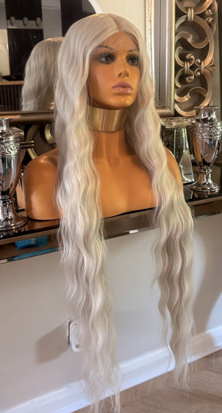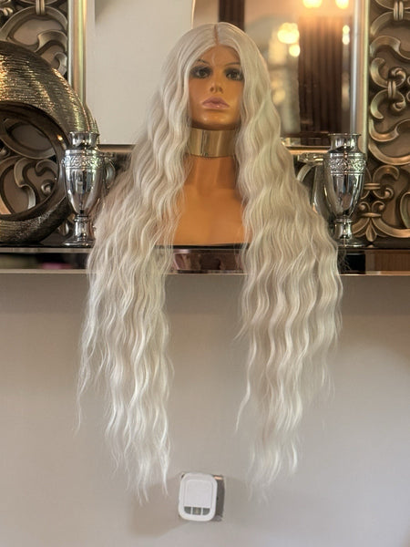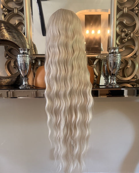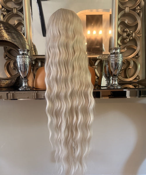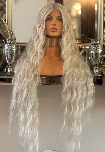 Ariel - Platinum Blonde Curly Lace Front Platinum Blonde Silver Wig Grey Natural Wig Wavy Kim K