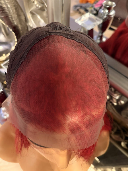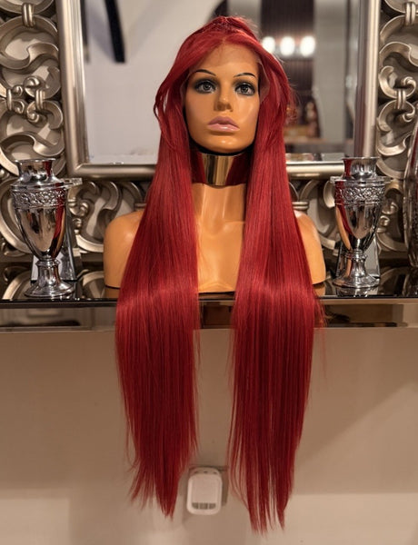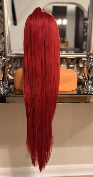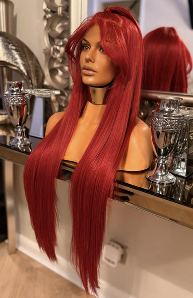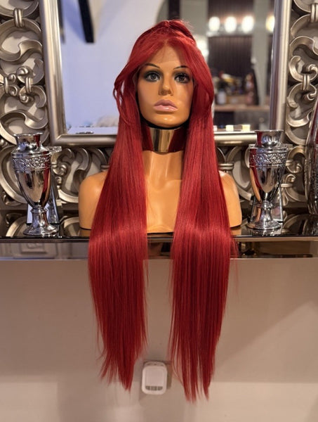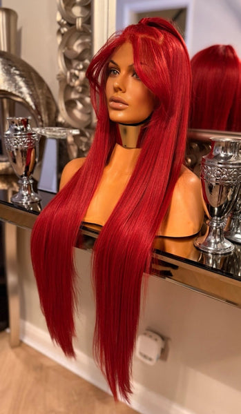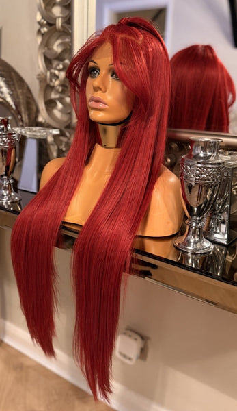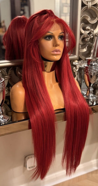 The wig is STUNNING!!! A gorgeous red Centre part wig. So sultry and effortlessly beautiful!